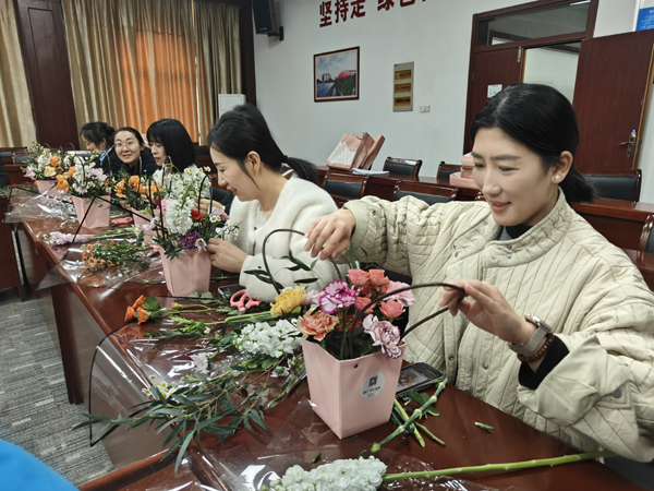 活動現(xiàn)場,花藝?yán)蠋煆孽r花品種、鮮花搭配和造型設(shè)計等方面進(jìn)行了詳細(xì)的講解和現(xiàn)場示范。長桌上鋪滿了各色鮮花與花藝工具,嬌艷的玫瑰、靈動的洋桔梗、素雅的康乃馨……女職工們興致勃勃,邊學(xué)邊做,享受著親手創(chuàng)作的樂趣和插花藝術(shù)帶來的快樂。