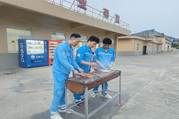 當(dāng)體育競(jìng)技的激情慢慢消散,一場(chǎng)溫馨的煙火氣為活動(dòng)增添了別樣的溫情。4月29日晚,本次活動(dòng)的壓軸環(huán)節(jié)職工自助燒烤盛宴在廣英水泥食堂廣場(chǎng)溫馨開啟。辦公室提前備足食材,精心布置場(chǎng)地,職工及家屬圍坐燒烤架旁,親手烤制美食,共享勞動(dòng)成果?,F(xiàn)場(chǎng)香氣四溢,歡聲笑語(yǔ)不斷,職工們暢談工作與生活,氛圍輕松融洽?;顒?dòng)還特別為參與者準(zhǔn)備了飲料、水果及零食,為節(jié)日增添了一份甜蜜與溫情。