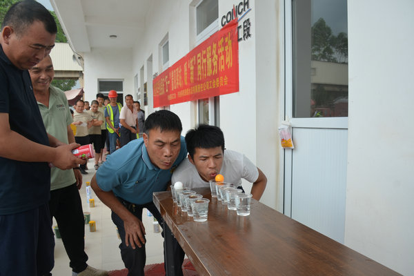 吹乒乓球過水杯項(xiàng)目同樣人氣爆棚。參賽者們鼓足腮幫子,小心翼翼地將乒乓球從第一個(gè)杯子吹向第六個(gè)杯子,眼睛緊緊盯著乒乓球,生怕它跳過杯子或滑落至桌子上。圍觀的司機(jī)們紛紛為參賽者加油助威,現(xiàn)場(chǎng)氣氛熱烈而歡快。?