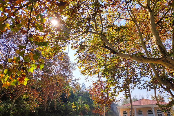 湛藍天空下,樹木枝葉浸染斑斕秋色,于工業(yè)景致中勾勒出一抹自然暈染的生機畫卷。