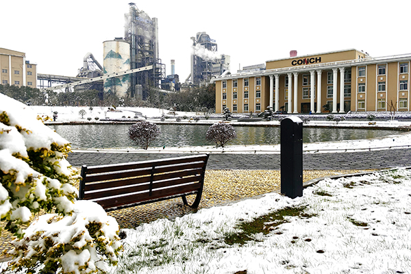 雪花紛紛揚揚地飄落,頃刻間化作了一個銀裝素裹的世界。雪花覆蓋在設備和水泥庫上,仿佛為它們穿上了一件厚厚的白色棉襖。